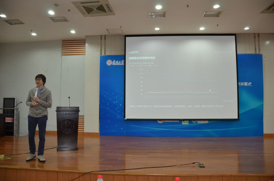 论坛部分,由智联招聘的CEO郭盛先生以“奋斗的青春最美丽”为主题对在场师生进行演讲,论坛吸引了来自天津各大高校的在校生和校友参加。郭盛通过大量的数据与前沿的观点,向大家展示了数字经济的快速发展和人才经济时代的到来;也通过许多生动的事例,向大家阐释了成功不只是靠持之以恒的努力,更需要兴趣与正确的选择,指出可以通过社会资金流向看行业发展趋势。随后在场师生与郭盛先生积极互动,郭盛用幽默的语言和深入的分析回答了现场师生关于企业发展、职业生涯规划及行业发展前景等方面的提问,引发现场师生阵阵掌声。