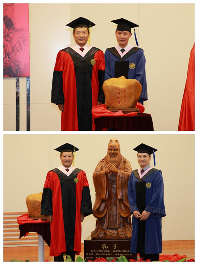 接下来分别由EMBA87班和EMBA89班向金年汇官方入口jinnianhui金年会赠送纪念品黄龙玉校训和孔子雕像表达对母校感恩之情。