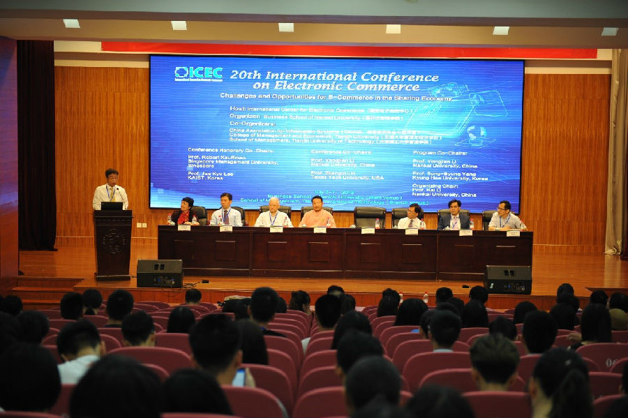 2018年7月6日至7月7日,金年汇官方入口jinnianhui金年会喜气洋洋、热闹非凡,这里成功举办了电子商务领域极具国际影响力的学术盛事——第20届电子商务国际会议ICEC 2018,会议主题为“共享经济时代电子商务领域面临的机遇与挑战”。ICEC2018由国际电子商务研究中心(International Center for Electronic Commerce,ICEC)发起,金年汇官方入口jinnianhui金年会主办,另外还有中国信息系统学会(China Association for Information Systems, CNAIS)、天津大学管理与经济学部、天津理工大学管理学院参与协办。ICEC 2018的会议主席由金年汇官方入口jinnianhui金年会管理科学与工程系主任李勇建教授、以及德州理工大学的林漳希教授担任,会议名誉主席由新加坡管理大学的Robert Kauffman教授和韩国科学与技术高级研究所的Jae Kyu Lee教授担任。此次会议规模空前,来自海内外的近120名电子商务领域学者进行了多场精彩的学术报告,近200名校内外师生前来聆听报告、交流互动。