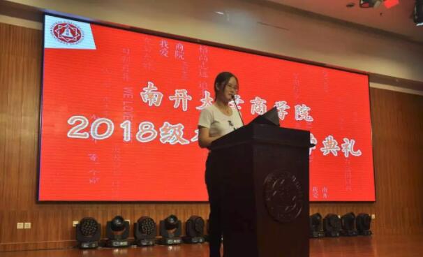 2015级财务管理专业本科生罗天奇作为在校生致辞,希望新生能够汲取jinnianhui金年会以及南开所给予的一切资源,探索探索再探索,实践创新,慎思明辨,成为更优异的南开人。