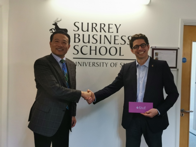 2019年4月17日至19日,金年汇官方入口jinnianhui金年会院长白长虹受邀率代表团访问英国,开拓与格拉斯哥大学、斯特克莱德大学和萨里大学等高校的交流与合作。