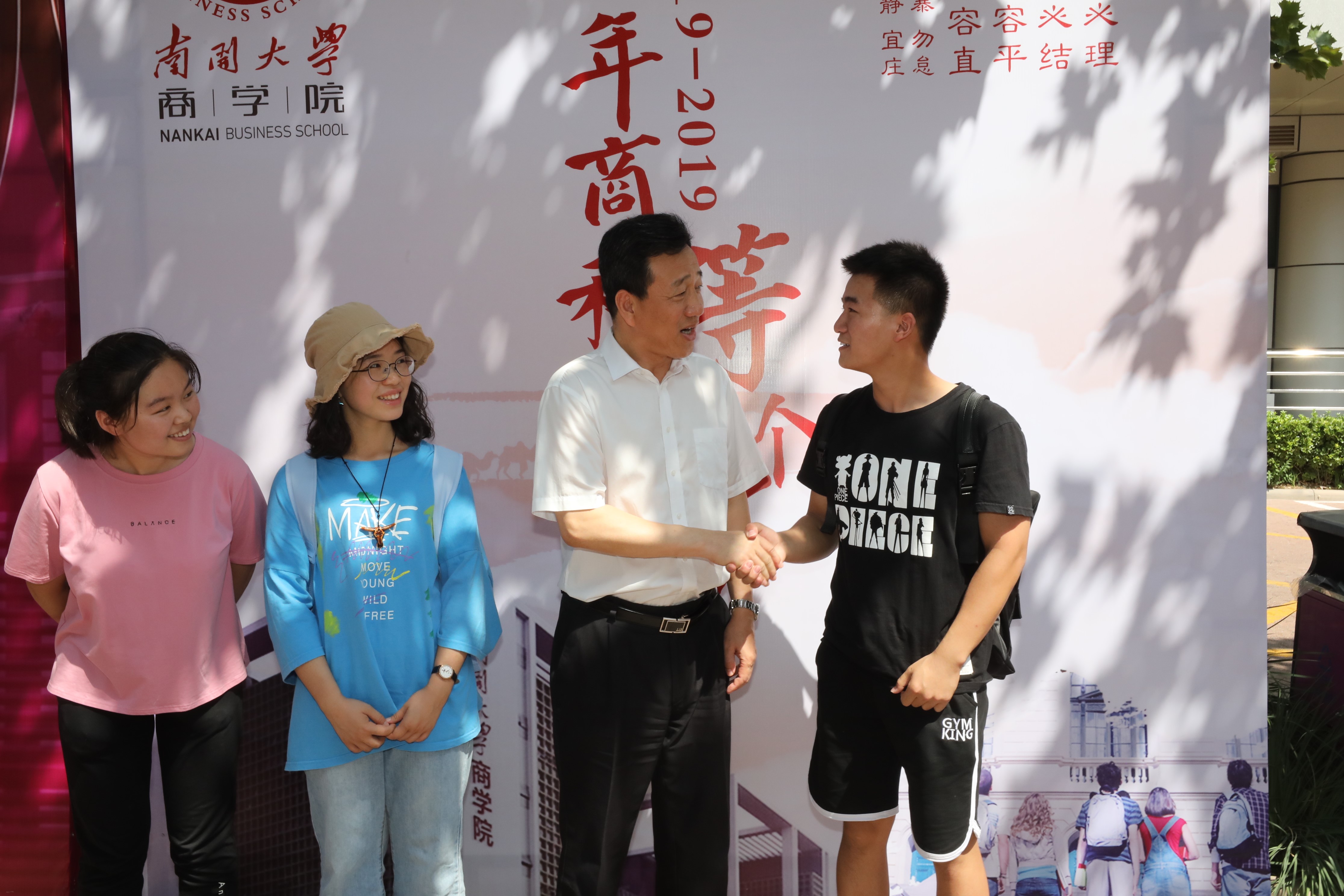 在迎新工作开展的过程中,校党委书记杨庆山、校党委副书记杨克欣来到迎新现场亲切问候迎新师生,询问迎新工作开展情况,向大家传递百年南开之精神,鼓励新生在南开园中培养允公允能之风貌。
