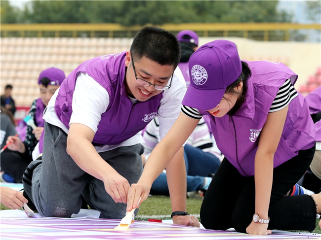 在八里台校区体育场,展开一副宽19.19米,高20.19米的巨型画布,寓意金年汇官方入口从1919年到2019年走过百年峥嵘岁月。巨型画布被分为100份,分别由100个小组参与绘制,最终拼接成完整的画作,用近400平方米的画布触摸百年南开时光纹路,描摹南开新百年。