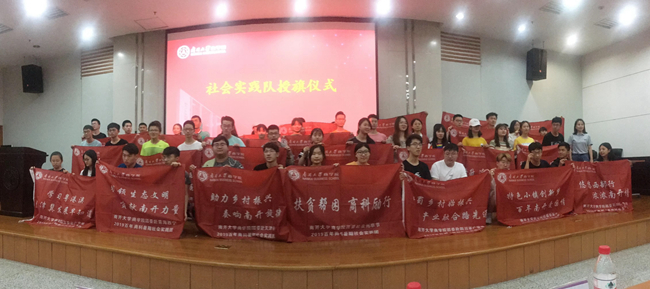 李娜为28支暑期社会实践队伍授旗。2019年暑期社会实践校级示范队队长,2018级本科生何禹辰带领大家进行社会实践宣誓,同学们纷纷许下“弘扬南开知中国服务中国的光荣传统,用青春演绎商院人风彩”的誓言。