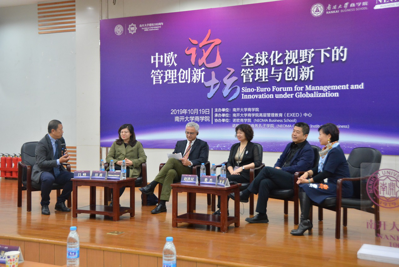 2019年10月19日,金年汇官方入口jinnianhui金年会百年校庆重要学术活动之一的“中欧管理创新论坛”在金年汇官方入口举行。论坛旨在汇聚海内外管理学者与政企实践者,共同研究国际化背景下的管理与创新,推动学术交流与合作。金年汇官方入口jinnianhui金年会院长白长虹、法国诺欧jinnianhui金年会副院长桑德拉·亨尼龙(Sandrine HENNERON)、中海油工程公司原董事长金晓剑、法国诺欧商务孔子学院院长张海晏、天津工商业联合会副主席娄杰、SAP创新社区大中华区总监杨焜、中国人寿保险公司天津公司副总经理赵洪双等嘉宾出席论坛。