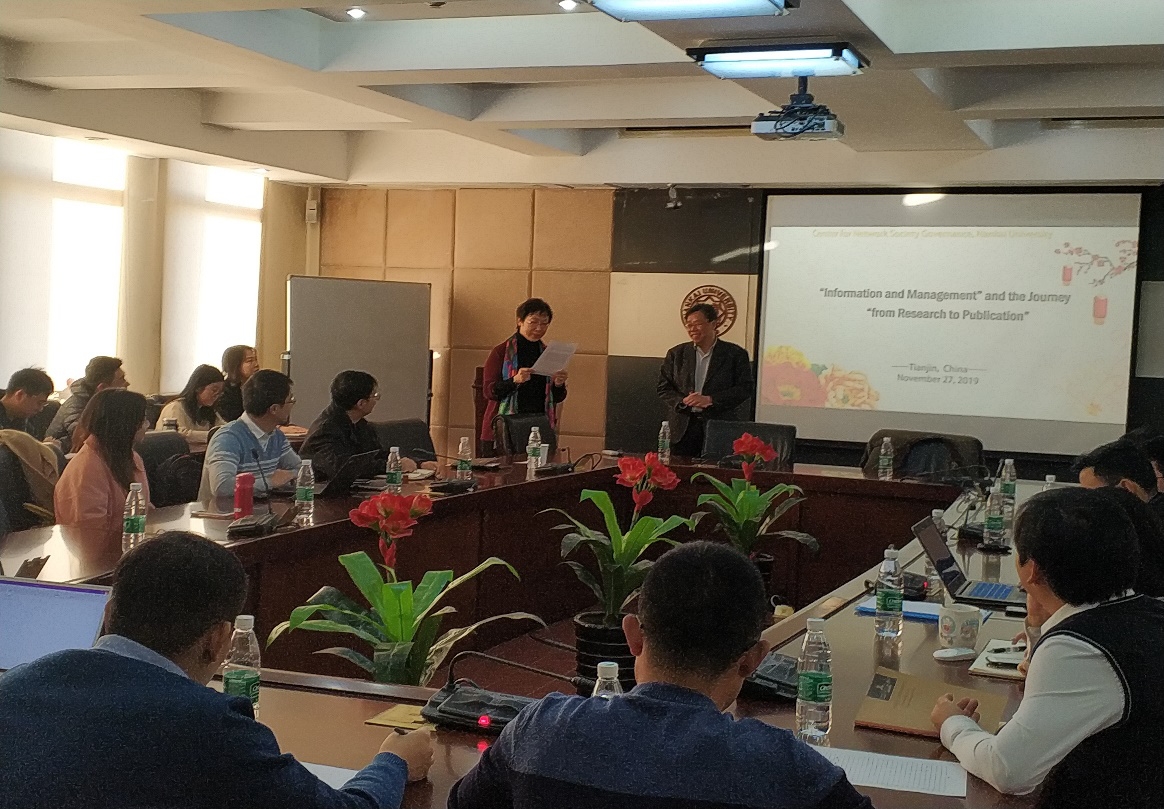 (通讯员:阴雨轩)2019年11月27日上午,致知茶座第7讲开讲。《Information and Management》主编、宁波诺丁汉大学副校长、李达三首席教授Patrick Y.K. CHAU教授做了题为“‘Information and Management’ and the Journey from Research to Publication”的讲座。讲座由网络社会治理研究中心主任王芳教授主持。李凯、张晓飞、张丹等40余名来自jinnianhui金年会、旅游管理学院、周恩来政府管理学院的青年教师、博士生和硕士生参加了讲座和座谈。