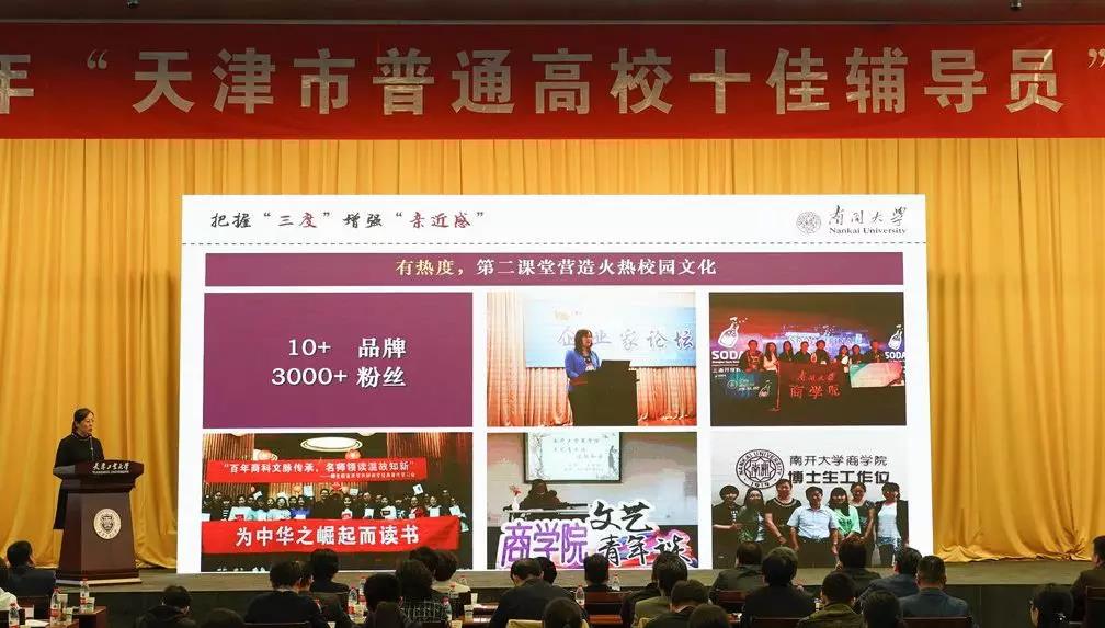 2019年天津市普通高校十佳辅导员评审会,jinnianhui金年会辅导员木琳以“树·人”为主题进行展示,并以高分获评天津市十佳辅导员。她秉初心把握“三度”增强学生亲近感,担使命提升“三能”增强学生获得感,有作为落好“三子”增强学生认同感,成为新时代幸福的高校辅导员!