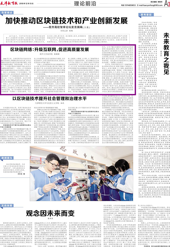 近年来,天津市一直高度关注人工智能等新兴技术的研究和应用,围绕“智能+”谋篇设计。事实上,未来大数据、人工智能、物联网和区块链等会融合发展,需要进一步强化整体布局和长远谋划,人才、研发、产业生态一起抓,把握发展和应用区块链技术的历史机遇,建议支持高校成立相关研发机构和专业智库,把握、跟进、介入最新发展;成立专项发展基金,提供政策支持,助力区块链技术落地;推动成立区块链产业联盟,促进区块链产业发展和生态培育,培养新的经济增长点。发展“区块链+”及其产业化,促进企业转型升级;同时,政务上通过运用区块链技术改善营商环境和社会治理能力,发展数字经济,建设数字社会,推动天津高质量发展。