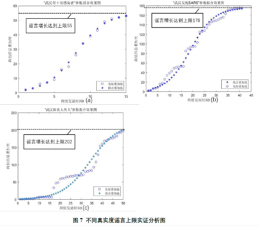 第四,采集谣言案例,数据标准化后进行真实度计算,并将案例大致分为高、中、低三个层级。针对不同层级的数据进行趋势拟合,检验步骤三所提出的假设。