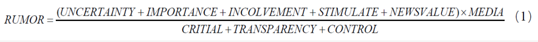 谣言的传播受到多方面因素的影响。吴建、马超参考了多位学者的观点,在Alport与Postman提出的经典谣言模型基础上,将谣言的新闻性以及传播过程中的管控力度考虑进来,改进了谣言传播公式,如式1: