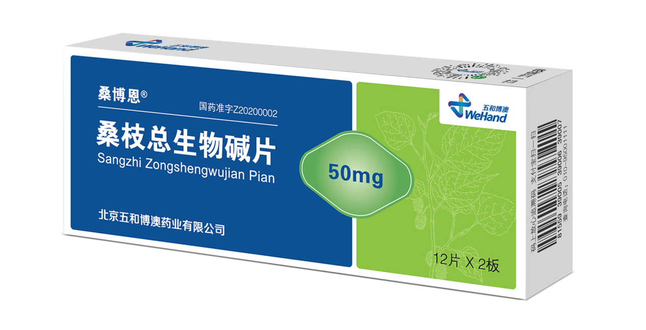 桑枝总生碱片是中国医学科学院&北京协和医学院药物研究所历时21年研发,拥有中国及美国、日本PCT授权专利,获国家重大新药创制科技专项、国家中医药管理局开发专项、北京市“十病十药”专项、北京市新药研发专项等国家和省部级重大基金支持,纳入重大前沿原创高精尖项目。临床试验由北京协和医院牵头,31家临床机构共同参与,以“糖化血红蛋白”为主要疗效指标,完成了“与原研化药比较”和“与安慰剂比较”的两项随机双盲临床评价。临床结果显示无论单独使用还是用于二甲双胍控制不佳的联合治疗,均具有显著的糖化血红蛋白降低效果,并且不良反应发生率低。药理学试验显示长期给药,具有调节糖脂代谢,改善血糖波动,增加胰岛素敏感性,降低空腹胰岛素水平,改善胰岛素分泌功能等作用。该产品产品从立项到上市,充分体现了“传承精华,守正创新,加快推进中医药现代化、产业化”的中医药发展理念。