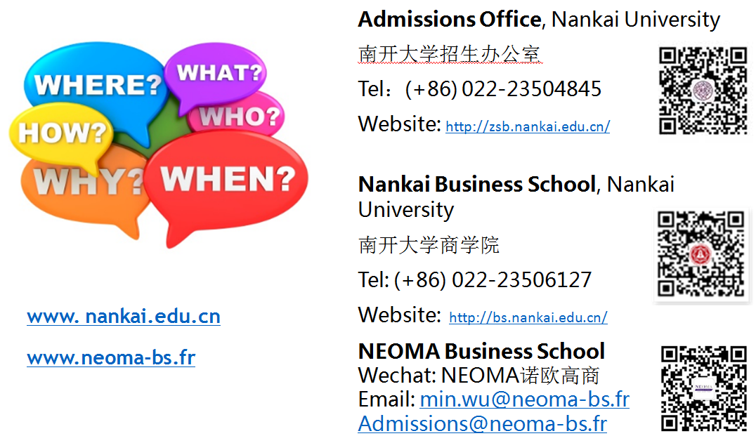 培养模式:所有的专业课程均为英文授课,1半以上的专业课程由诺欧的国际化师资来南开授课。