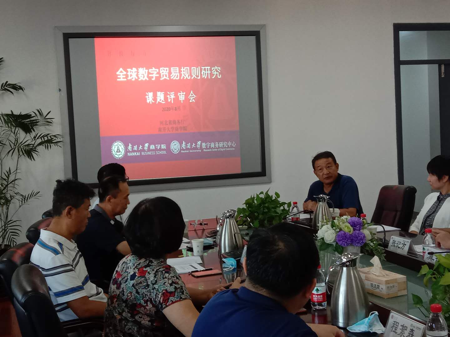 2020年8月21日,河北省商务厅与金年汇官方入口在金年汇官方入口jinnianhui金年会818会议室召开了“数字贸易规则与标准课题研究”项目评审会,此次课题研究报告由金年汇官方入口jinnianhui金年会数字商务研究中心主任李凯教授及其团队完成。评审会邀请了来自天津大学、中国人民大学、天津社会科学院、天津工业大学、中国工商银行总行、阿里巴巴集团等单位领导和专家6人,金年汇官方入口jinnianhui金年会院长白长虹教授出席会议并致辞,河北省商务厅相关领导负责人听取了课题研究成果汇报,评审会专家就课题成果进行了认真评审。