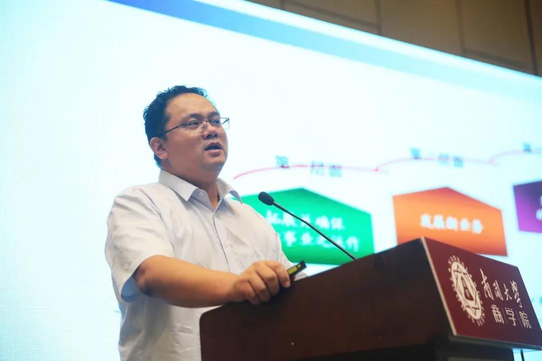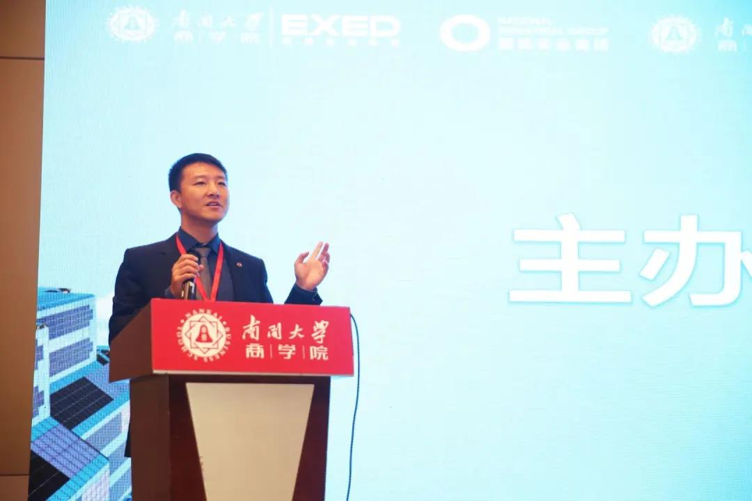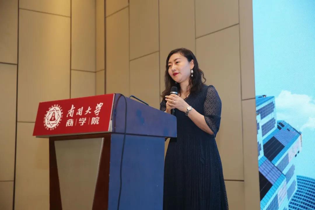 国民实业集团社会山文旅港商业管理公司总经理李海英女士发表致辞,李海英女士作为南开校友,结合自己的工作发展,分享了在金年汇官方入口jinnianhui金年会EXED学习的心路历程及学习感悟。她还特别结合了自己对公司战略的认知过程,向在学期间的授课教师王迎军教授表达了感谢。