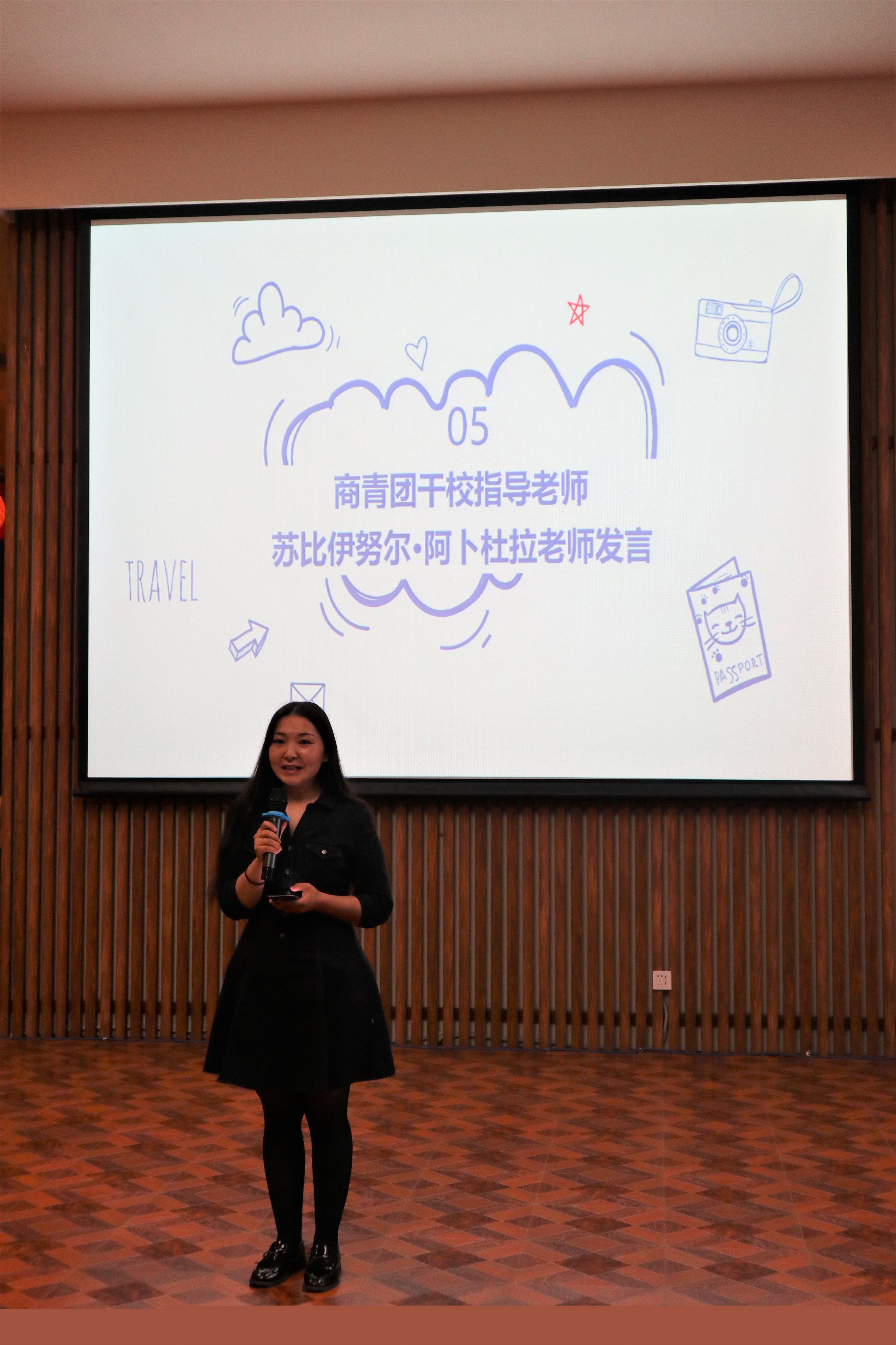 随后,团校指导老师苏比伊努尔·阿卜杜拉老师上台致辞。她在向学员们表达欣赏的同时,也提出了要认识自我,明确身份,弘扬南开精神,做好本职工作,自主维护民族团结的要求与期望。