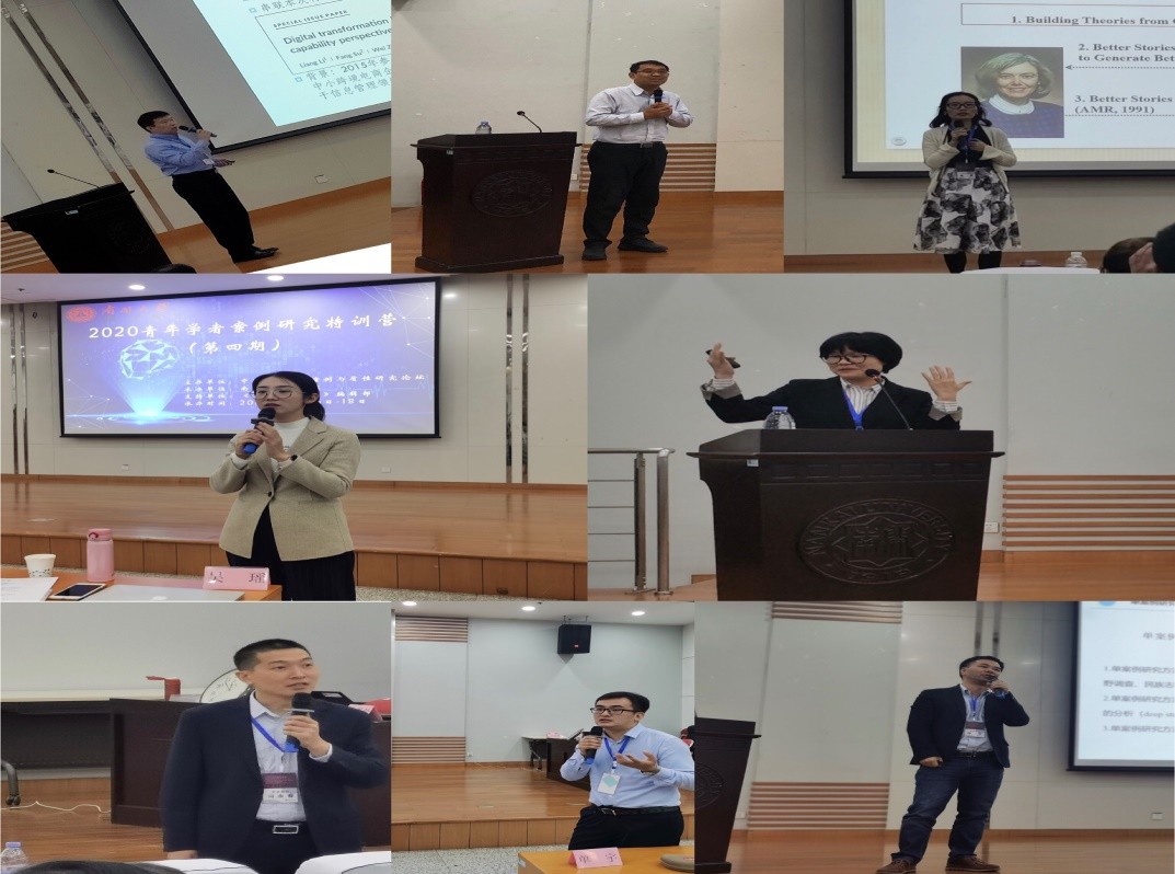 对外经济贸易大学的李亮老师,发表了“案例研究的方法论之旅:困惑与对话”的主题演讲;北京第二外国语学院李彬老师发表了“源头活水:案例研究中的问题提出与文献综述”的主题演讲;天津财经大学的冯永春老师发表了“慎思明辨:案例研究中理论的角色”的主题演讲;大连理工大学的崔淼老师,发表了“案例数据收集:柳暗花明又一村”的主题演讲;浙江工业大学的程聪老师,发表了“单案例研究:数据分析、结果呈现及普适性”的主题演讲;东北财经大学的单宇老师,发表了“多案例研究的数据分析:大浪淘沙 沉者为金”的主题演讲;中山大学的吴瑶老师,发表了“视觉思维与质性研究中的图形表达”的主题演讲;暨南大学的苏芳老师,发表了“案例研究论文的写作问题和改进策略”的主题演讲。除了主题演讲环节外,特训营还设置了案例研究论文分享环节,清华大学的李晓华老师、西华师范大学的杜华勇老师、电子科技大学的孙世超老师以及中山大学的吴小龙老师分别分享了自己的案例研究论文,李亮老师、崔淼老师、冯永春老师、单宇老师等讲师团老师对案例研究论文,进行了细致而精彩的点评。