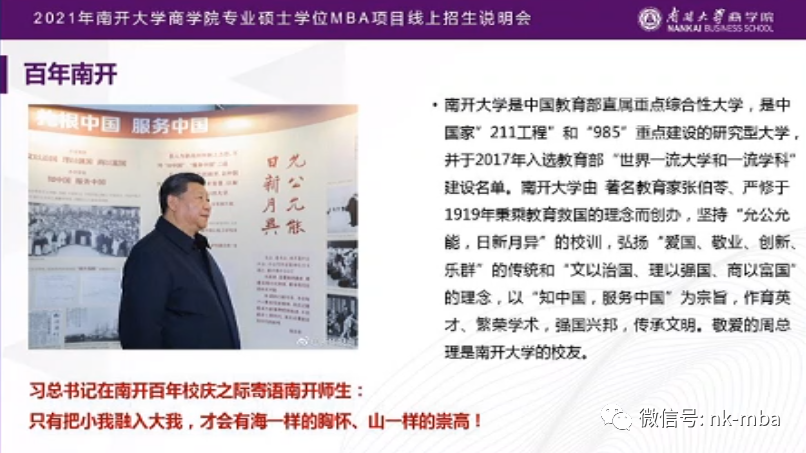 金年汇官方入口MBA教育在管理和创新方面一直走在全国前列,堪称中国MBA教育的先行者、创新者、引领者。金年汇官方入口jinnianhui金年会专业学位教学中心主任、博士生导师袁庆宏教授结合金年汇官方入口百年商科底蕴对金年汇官方入口MBA项目教学体系进行了全面介绍。
