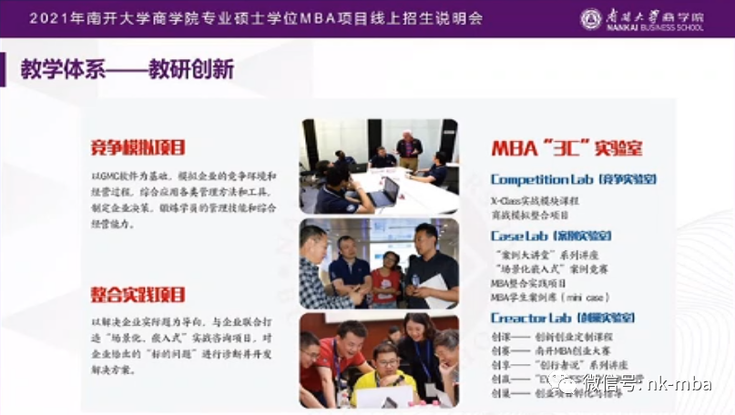 据袁教授介绍,金年汇官方入口MBA项目近年来开展教研创新,开设“竞争模拟项目”、“整合实践项目”,建设MBA“3C”实验室(Case Lab、Creative Lab、Competition Lab),引领学生实现从理论学习到管理实践的对流与交融。欢迎广大优秀学子走入南开,走向精彩未来。