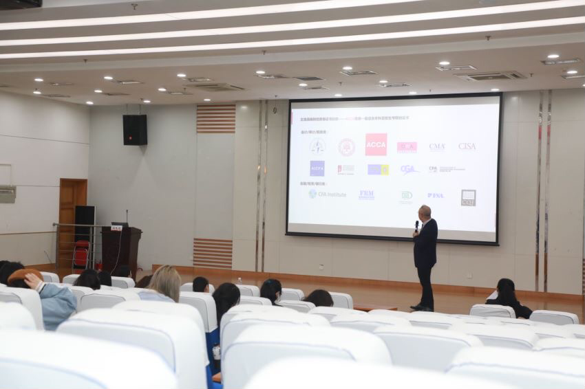 讲座开始时,曲老师通过数正方形的趣味互动强调了数学建模能力对于从事投行等金融行业的重要性,并由此引申出开拓视野对于寻找和把握就业机会的重要性。接下来,曲老师通过详实的案例分析,讲述了当前财会领域发展趋势。一方面,他通过多个上市企业的实例说明目前企业经营发展阶段处于由产品运营向资本运营的过渡阶段——各大公司纷纷寻求上市机会,财会行业人才需求旺盛;另一方面,他强调了当前人工智能、区块链等新兴技术对财会自动化的强大驱动作用,表明了当前会计学等专业需求逐渐向智能财务方向转型。