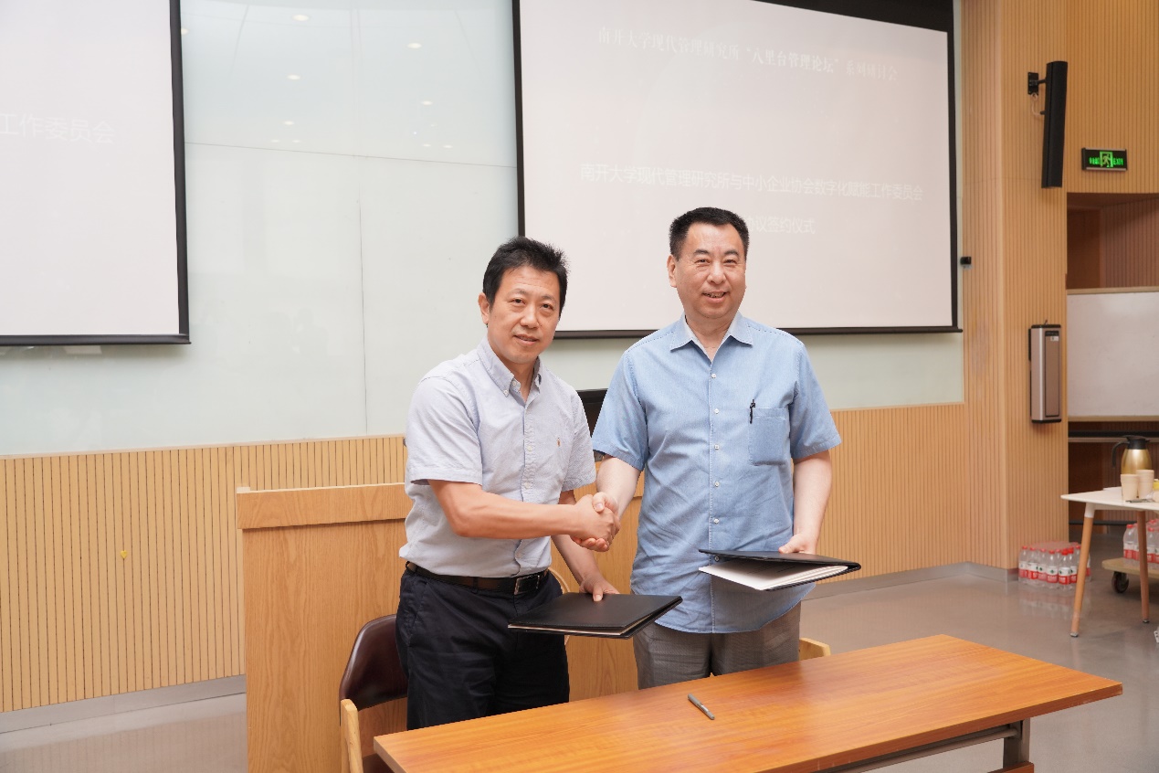 (通讯员:徐绘君)2021年6月20日,由金年汇官方入口现代管理研究所主办,金年汇官方入口jinnianhui金年会校友事务中心、金年汇官方入口jinnianhui金年会专业学位教学中心、金年汇官方入口jinnianhui金年会学生工作办公室协办的“数字化转型:技术还是管理”学术研讨会,在金年汇官方入口jinnianhui金年会召开。来自京津地区的高校师生、企业界代表、南开校友等60余人参加了研讨会。会议讨论了企业数字化转型的重要性和必要性、转型涉及的技术与管理问题、数字化转型的路径与案例、数字化转型与组织变革等问题,并就产学研共同推进企业数字化转型等问题达成共识。会议期间还签署了“中小企业数字化转型理论与实践路径研究”合作协议。