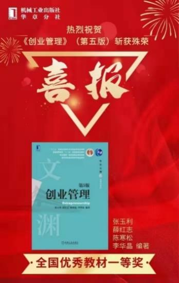 近日,国家教材委员会发布了首届全国教材建设奖奖励决定。金年会张玉利教授、薛红志副教授等撰写的《创业管理》(第五版)喜获全国优秀教材(高等教育类)一等奖,是全国获得一等奖的管理类6本教材之一。
