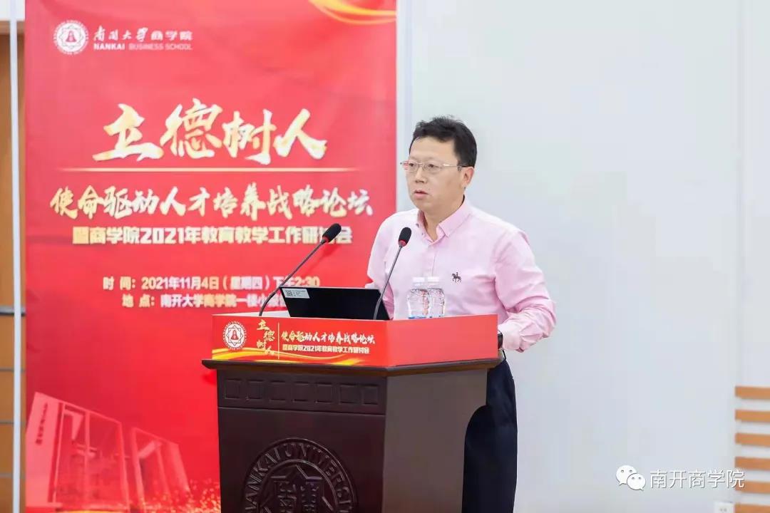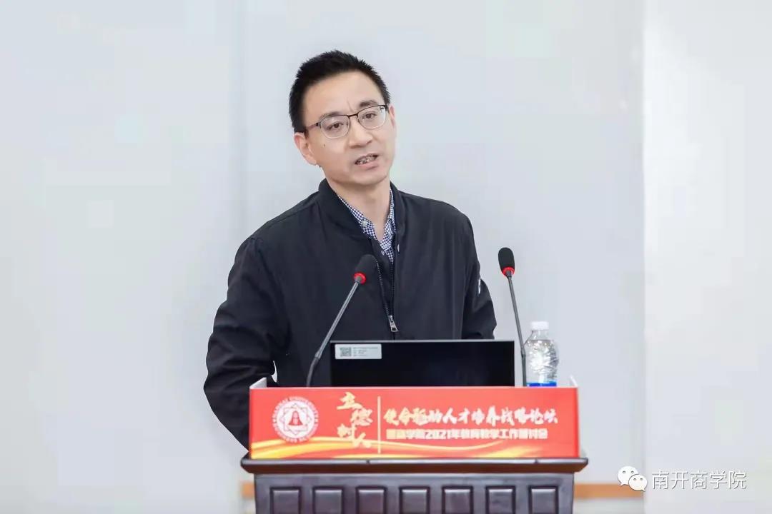 研讨会上,教务处处长李川勇做了《落实南开40条,提升育人质量》的主题报告,从“南开40条”的要点回顾、建设情况和2021年的重点工作方向三个方面进行讲解,重点解构了以学为主教学相长的“师生共同体”,鼓励学院老师们参与到学业指导和一流课程建设。