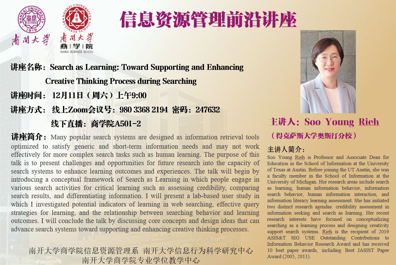 报告人: Soo Young Rieh博士 (德克萨斯大学奥斯汀分校 教授)