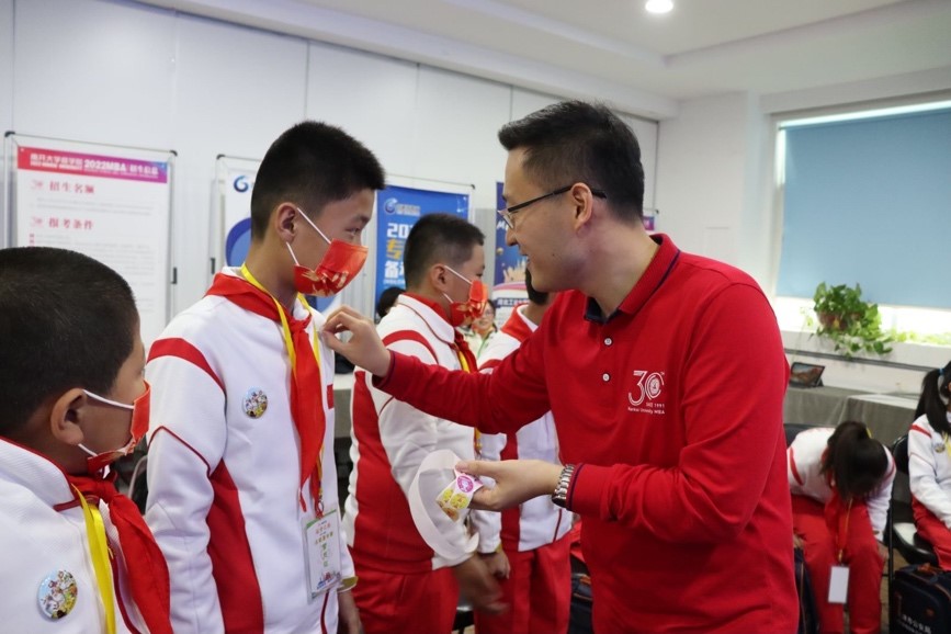 第二站希望小学的孩子们展开了金年汇官方入口之旅,由于疫情防控的原因大家不能进入南开校园,但我们的南开志愿者们,依然积极创造条件,给孩子们仔细地讲着学校的点点滴滴,让孩子们感受到优秀学府的魅力。在丰富有趣的游戏中收获快乐,收获知识。同时也给孩子们准备了丰富的南开纪念品。