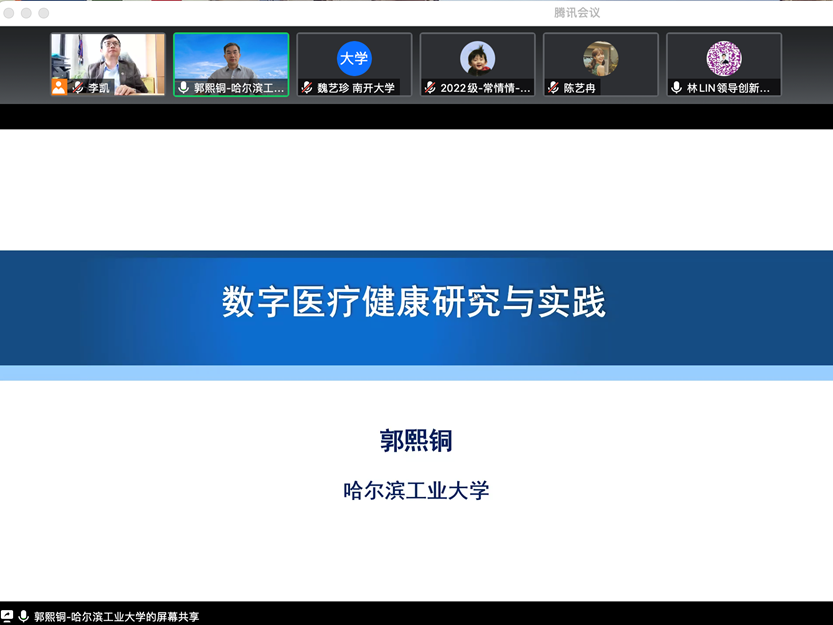 随后,哈尔滨工业大学郭熙铜教授做《数字医疗健康研究与实践》的主题演讲。报告从信息系统视角探索电子健康研究与实践:面向我国国情的数字医疗健康管理理论、方法、技术和实践应用,并进一步探讨健康科学的国际国内进展和未来展望。