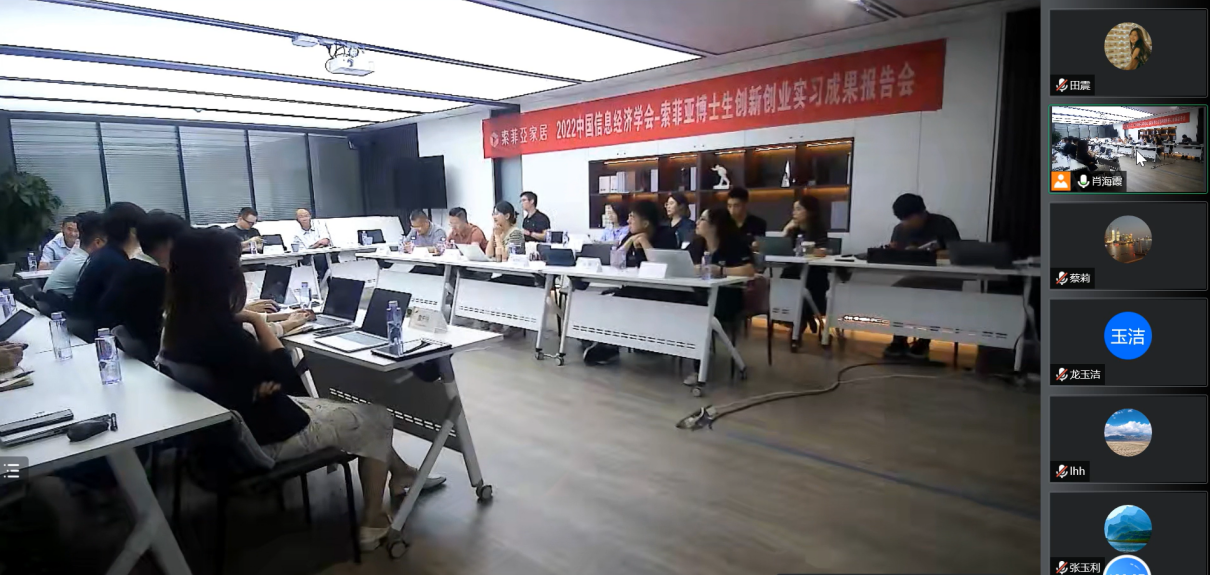 2022年9月1日下午,经过四周的参与学习和深度调研,索菲亚博士生创新创业调研报告会在创展中心现代会议室成功举办。索菲亚总裁王兵、IDC总经理庞菲、DHC总经理戴振军、米兰纳事业部总经理曾祥伟、组织部部长聂凌慧、新零售中心总经理钱晔、服务中心总经理张李飞、组织部副部长杨红霞、新零售中心政委聂二辉、总裁助理蓝庆文,以及中山大学谢康教授、肖静华教授、邹波教授出席本次会议并进行点评。吉林大学蔡莉教授和李雪灵教授、金年汇官方入口张玉利教授在线上参与会议并给予指导,报告会由索菲亚组织部副部长杨红霞主持。