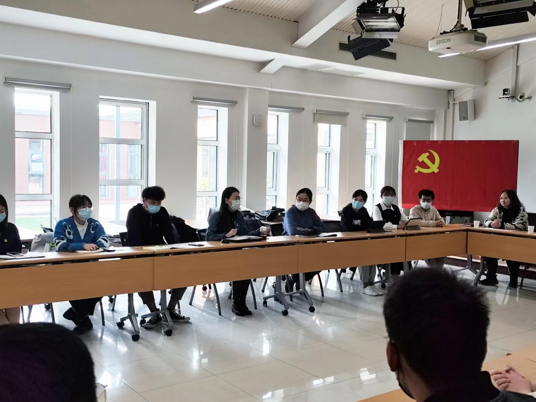 马丽娇带领在场师生认真学习了二十大报告各部分的要点,并结合师生学习工作实际分享学习感受。她讲到,国家安全是民族复兴的根基,社会稳定是国家强盛的前提。正是因为国家的长治久安我们才有了高速发展的机会,作为学生党员、团员骨干,要坚定树立总体国家安全观,在维护国家安全稳定工作中做出青年应有的担当。