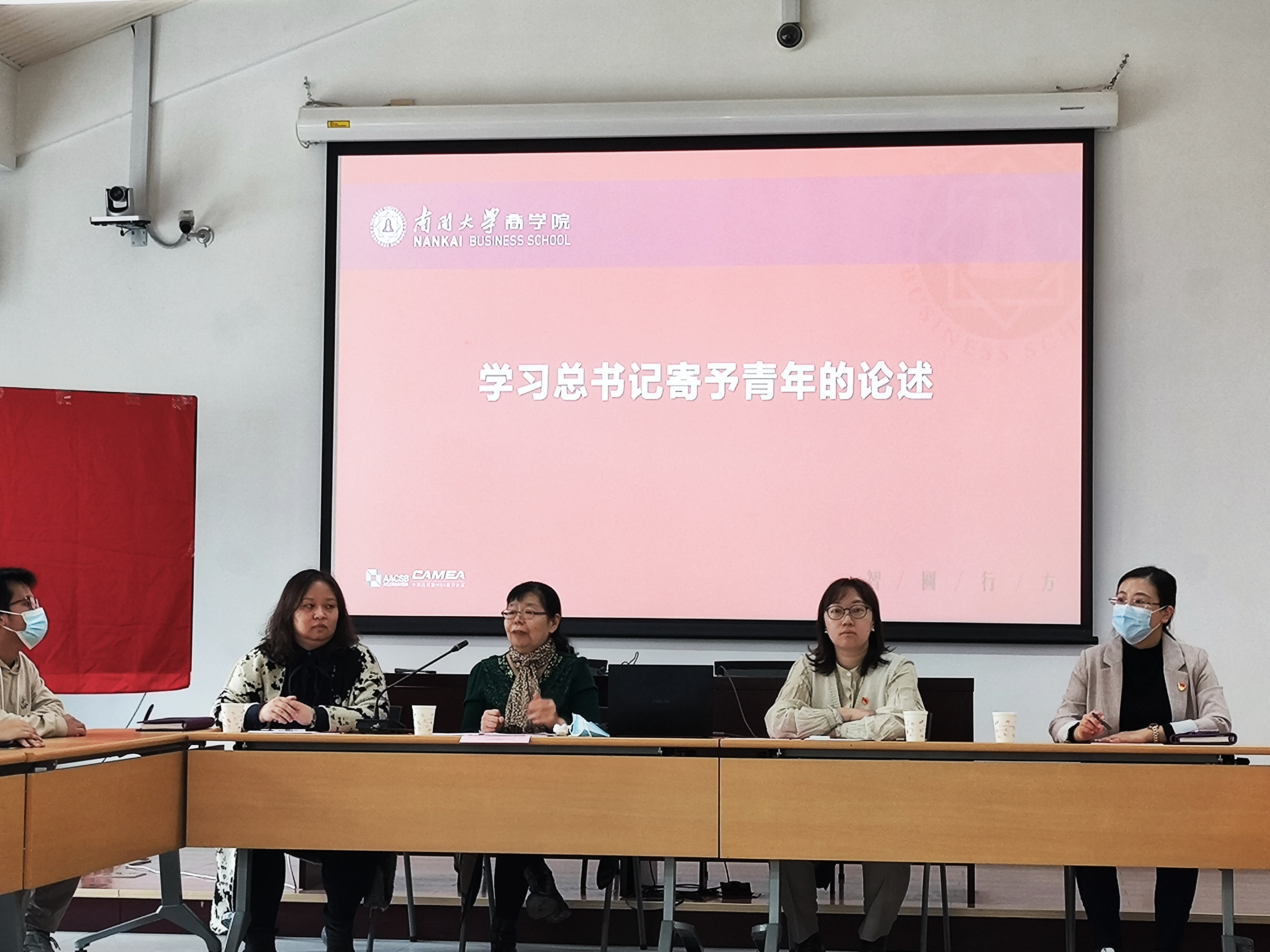 会上,孙跃首先就党的二十大报告中对青年和青年工作的重要论述及习近平总书记寄语青年的历次讲话展开交流,她讲到,二十大报告中关于青年和青年工作的这段论述文字精炼,却内涵丰富,寓意深刻。论述涵盖了青年与时代的关系、青年工作的地位、对新时代青年的殷切期盼等重大问题。她勉励在场同学,青年强,则国家强。青年是祖国的未来、民族的希望,也是党的未来和希望。作为新时代的南开商科学子,更应当肩负伟大使命,不负时代,不负韶华,以管理创新为己任,努力探索中国情景、中国理论的国际表达,成长成为引领创新、服务社会的允公允能的管理精英。