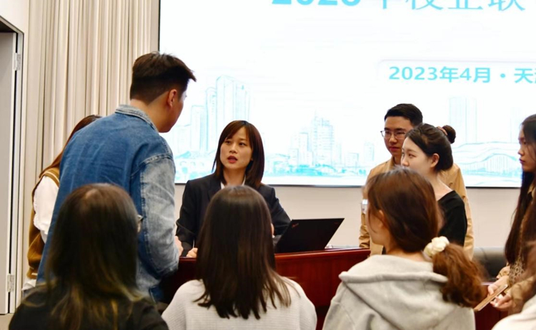 中建陆海投资公司党委副书记、副总经理高伟出席活动并致辞,中建陆海投资公司人力资源部经理王海莉就公司背景及发展方向进行了详实的介绍,金年汇官方入口2020届经济学院毕业生刘晓敏就入职经验及工作经历与同学们展开交流。