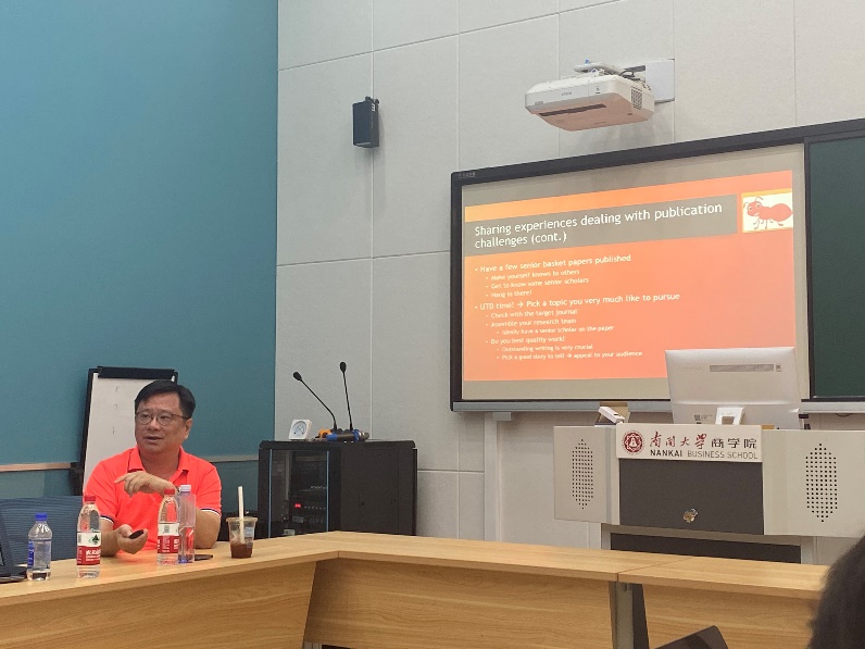罗欣教授的讲座主题为“Seeking publication success in premier journals: Revisit and sharing experiences”。罗教授介绍了自己的学术历程,分析几本顶级信息系统领域期刊的特点,并结合自己近年来在国际顶级管理期刊(UTD-24)上发表的论文(SR 2021、ISR 2022、JOM2022、POM 2023),分享了自己在一流期刊发表论文过程中面临的挑战、心得体会、以及顶刊发表的成功经验。
