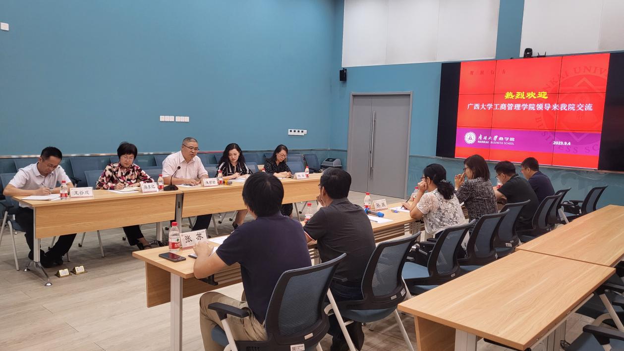 (通讯员刘若愚)9月4日下午,广西大学工商管理学院院长朱帮助教授等一行五人到金年会交流访问,双方对学院国际交流与认证、师资队伍建设、人才培养、学科建设等进行交流。