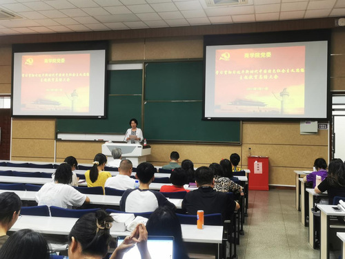 孙跃书记从理论学习、调查研究、推动发展、检视整改和建章立制等方面介绍了学院开展主题教育的主要做法。通过“以学增智,党建引领助力人才培养”“以学正风,深入调查研究强化作风建设”“以学增智,党建引领助力人才培养”“以学促干,学思践结合助推学科发展”四个模块展示了学院开展主题教育所取得的成效。紧接着,结合学院实际,详细分析了学院在开展主题教育过程中存在的问题和不足。最后强调,学院党委将认真落实上级决策部署,切实扛起主体责任,坚持把理论学习、调查研究、推动发展、检视整改贯通起来,有机融合一体推进。持续加强作风建设,聚焦立德树人根本任务,构建“新商科”精英人才培养体系,解放思想,担当作为,深化改革,锐意进取,为助力学院各项工作迈上一个新台阶作出更大贡献。