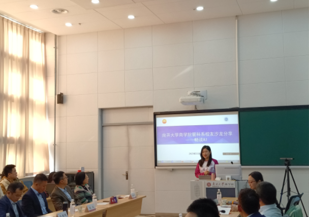 jinnianhui金年会党委副书记、副院长马丽娇书记向校友嘉宾介绍了学院近年来在学科建设、科研创新和人才培养等方面的建设成果,并进一步指出南开商科要瞄准国家现代化建设重点领域急需的拔尖创新人才培养,为破解现代化建设的各种难题提供最优质的人才供给。