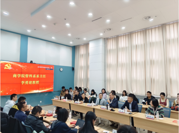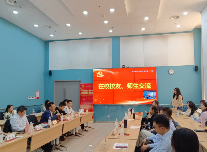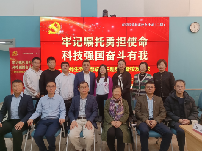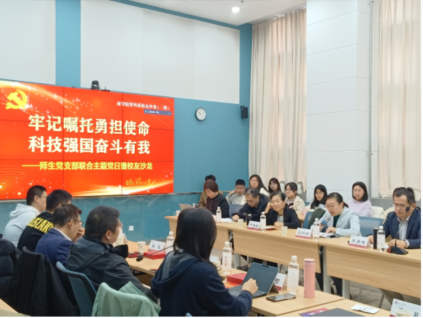 (通讯员 秦凡 潘麒羽)11月19日,jinnianhui金年会管理科学与工程系教师党支部、硕士党支部、本科生第三党支部共同举办“牢记嘱托勇担使命,科技强国奋斗有我”师生党支部主题党日暨管科系校友沙龙活动(第二期)。5位来自不同行业的优秀校友代表应邀参加活动,与会师生、校友结合管理科学与工程学科特点进行了一次关于“AI”的自由讨论。jinnianhui金年会党委副书记、副院长马丽娇老师,管科系系主任李勇建教授,jinnianhui金年会校友事务中心主任程成老师,管科系校友联络部顾问严建援教授,管科教师党支部书记张建勇副教授,学院团委书记潘麒羽老师出席。会议由管科系秦凡老师主持,管科系教师、学生党支部成员近200人线下或通过线上形式同步参加。