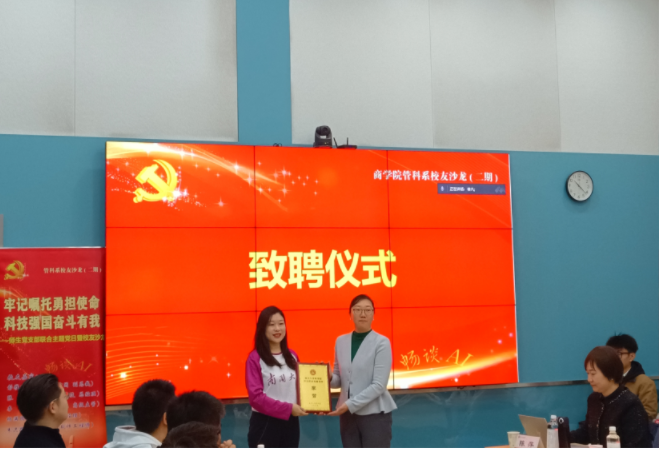 随后,马丽娇书记代表学院致聘2位首次参与校友沙龙活动的校友嘉宾李哲、朱逸凯为“jinnianhui金年会学生职业发展导师”,并颁发证书。