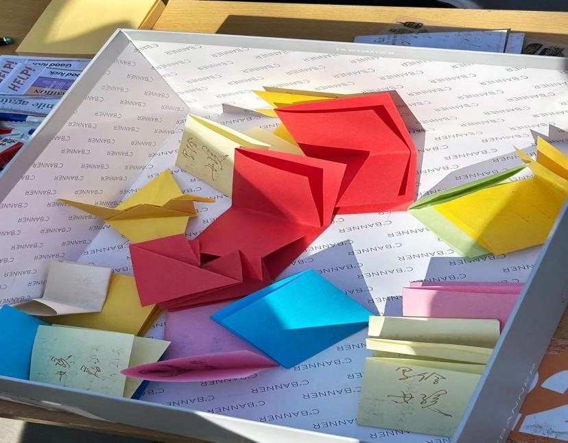 安慰盒子,传递温情。安慰盒子放置在中间,里面的安慰纸条循环流转。同学们抽取一张,再自己写下一张,向外输出能量的同时,也收获了心灵的慰藉。祝福他人,也激励自己。这份匿名的关怀、这份陌生的温度,使大家相互汲取能量。温暖的爱在人群中传递。