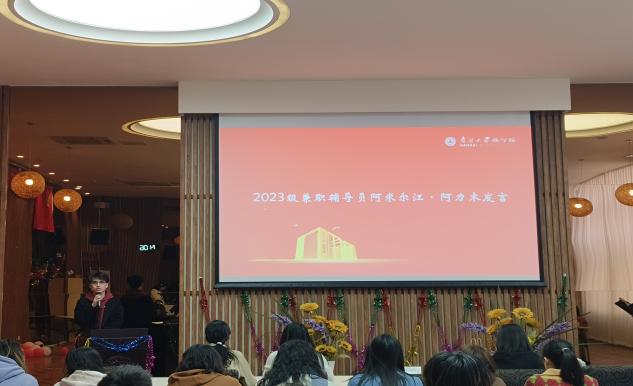 紧接着,2023级兼职辅导员阿米尔江·阿力木向大家致辞。他回顾了团校的发展历程,对团员们寄予了厚望,并鼓励大家继续为团组织的发展贡献力量。团校校长张天祎也紧随其后,介绍了团校职能与架构,对团校的未来发展提出期望。