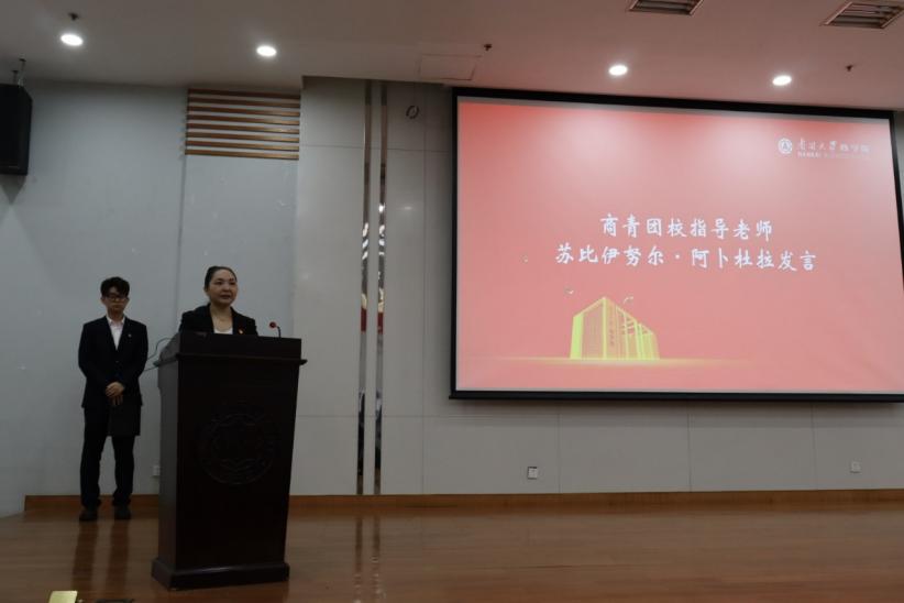 随后,商青团校指导老师苏比伊努尔发表了激昂有力的讲话。她回顾了习近平总书记视察南开时的情景,并强调了金年汇官方入口在习近平总书记的嘱托下所取得的显著成就。她鼓励同学们要珍惜这份荣誉和责任,以更加饱满的热情投入到学习和工作中,为金年汇官方入口的繁荣发展贡献自己的力量。