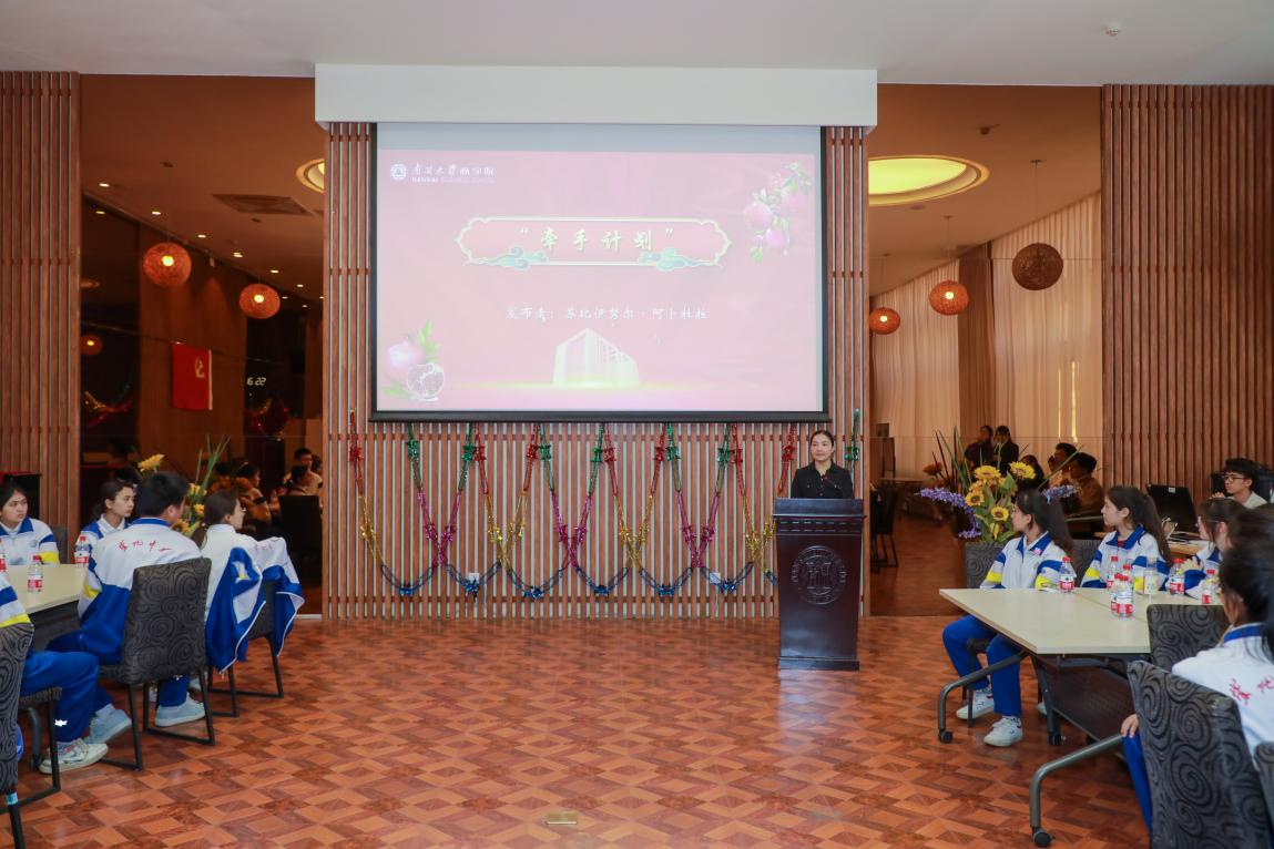 金年汇官方入口jinnianhui金年会党委副书记副院长、团市委统战部副部长周翠翠、团市委综合服务中心(天津市希望工程实施办公室)希望工程管理部部长、天津市青少年发展基金会秘书长王晟奕,天津市希望工程实施办公室希望工程管理部副部长高冰,南开团区委权益与学少部部长周玉凝,崇化中学新疆班主管教师刘蕾,金年汇官方入口jinnianhui金年会团委负责民族工作的专职团干部苏比伊努尔,金年汇官方入口jinnianhui金年会学生代表和来自崇化中学的师生代表等90余人参与活动。
