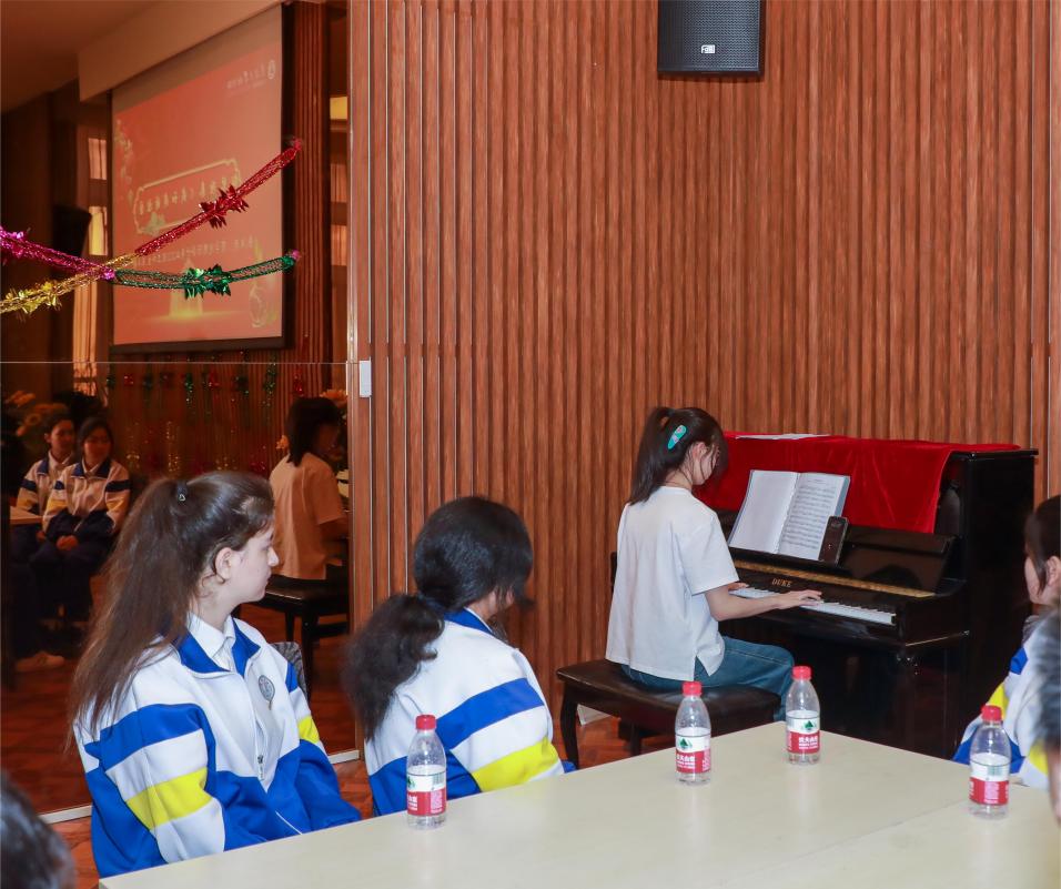 随后,伴随着优美的音符在耳畔萦绕,jinnianhui金年会学生贺雨轩、王卓晗、孙乐涵等同学分别为大家带来了舞蹈《兰亭序》、钢琴表演《我和我的祖国》及歌曲合唱《如愿》。
