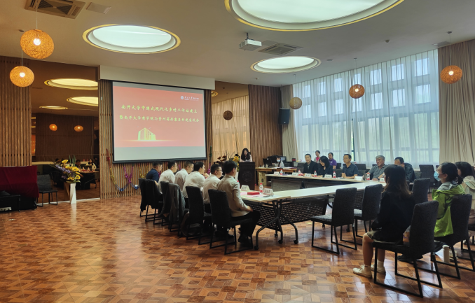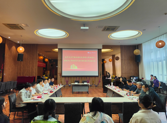 4月26日,金年汇官方入口中国式现代化乡村工作站建立暨金年汇官方入口jinnianhui金年会与贵州省丹寨县共建座谈会在jinnianhui金年会A301开展。贵州省黔东南苗族侗族自治州丹寨县委常委、组织部部长、党校校长余胜文,丹寨县政府党组成员、粤黔协作工作队黔东南工作组驻丹寨小组组长雷杰文,丹寨金钟经济开发区党工委委员,管委会副主任苏福,丹寨县委组织部副部长、人力资源和社会保障局党组书记、局长段安付,企业代表茅台集团生态农业公司京津冀片区经理唐俊、万达集团丹寨小镇茶叶公司总经理刘福东参加会议,金年汇官方入口jinnianhui金年会党委书记王坚、金年汇官方入口图书馆副馆长、jinnianhui金年会信息资源管理系副教授樊振佳等专家学者参会,会议由金年汇官方入口jinnianhui金年会党委副书记、副院长周翠翠主持。