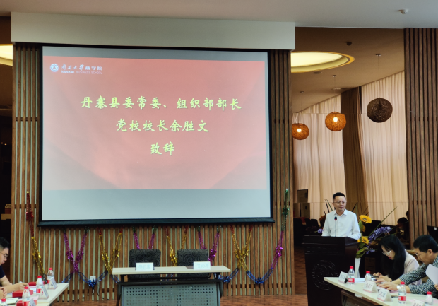 4月26日,金年汇官方入口中国式现代化乡村工作站建立暨金年汇官方入口jinnianhui金年会与贵州省丹寨县共建座谈会在jinnianhui金年会A301开展。贵州省黔东南苗族侗族自治州丹寨县委常委、组织部部长、党校校长余胜文,丹寨县政府党组成员、粤黔协作工作队黔东南工作组驻丹寨小组组长雷杰文,丹寨金钟经济开发区党工委委员,管委会副主任苏福,丹寨县委组织部副部长、人力资源和社会保障局党组书记、局长段安付,企业代表茅台集团生态农业公司京津冀片区经理唐俊、万达集团丹寨小镇茶叶公司总经理刘福东参加会议,金年汇官方入口jinnianhui金年会党委书记王坚、金年汇官方入口图书馆副馆长、jinnianhui金年会信息资源管理系副教授樊振佳等专家学者参会,会议由金年汇官方入口jinnianhui金年会党委副书记、副院长周翠翠主持。