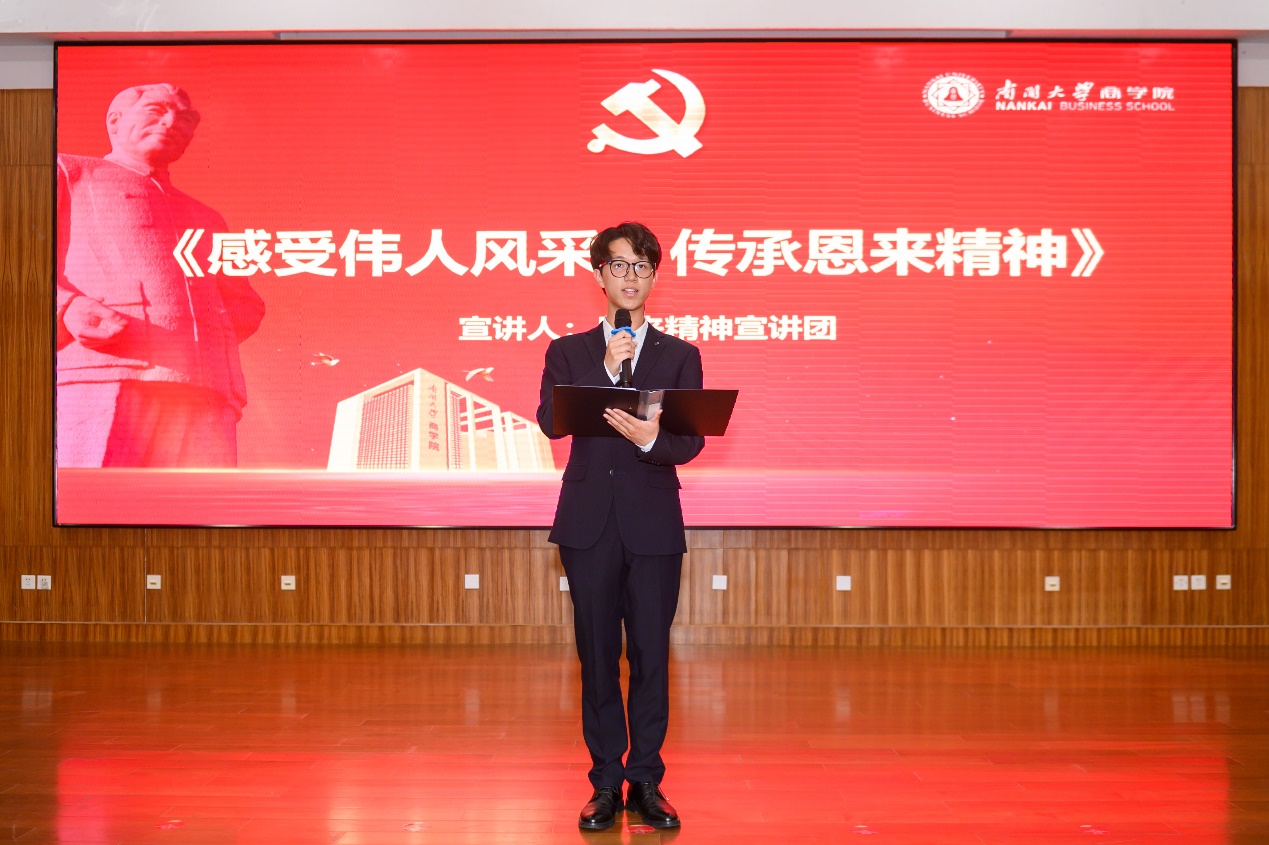 为大力弘扬周恩来精神、传承红色基因,激励商青学子为中华民族伟大复兴贡献青春力量,近日,金年汇官方入口jinnianhui金年会本科生第二党支部成功举办了“寻总理足迹,立崛起壮志”主题党日活动。在本次活动中,周恩来邓颖超纪念馆讲解员皇悦悦老师、社区物流管理党支部成员、周恩来政府管理学院恩来精神宣讲团成员、金年汇官方入口jinnianhui金年会本科生第二党支部成员等130余人到场参与。