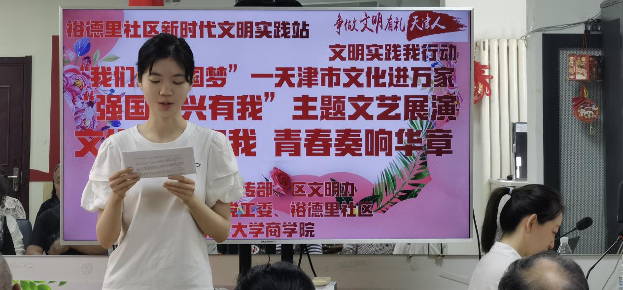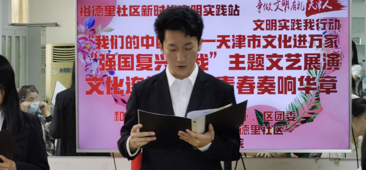 紧接着,王卓晗同学的舞蹈表演《go big or go home》则充满了力量与活力,带领居民们一同沉浸在音乐与舞蹈的完美融合中。朗诵《青春的中国》由韦祯、李叙沂同学联袂呈现,他们用激昂的语调描绘出青春的活力与中国的辉煌,展现了国家的崛起与青年的担当。最后,黎勇同学以一首《明年今日》为本次文化展演画上了圆满的句号。他的歌声中充满了对未来的期许和对过去的怀念,告诉人们要收藏好今天的幸福,期待明天的再见。