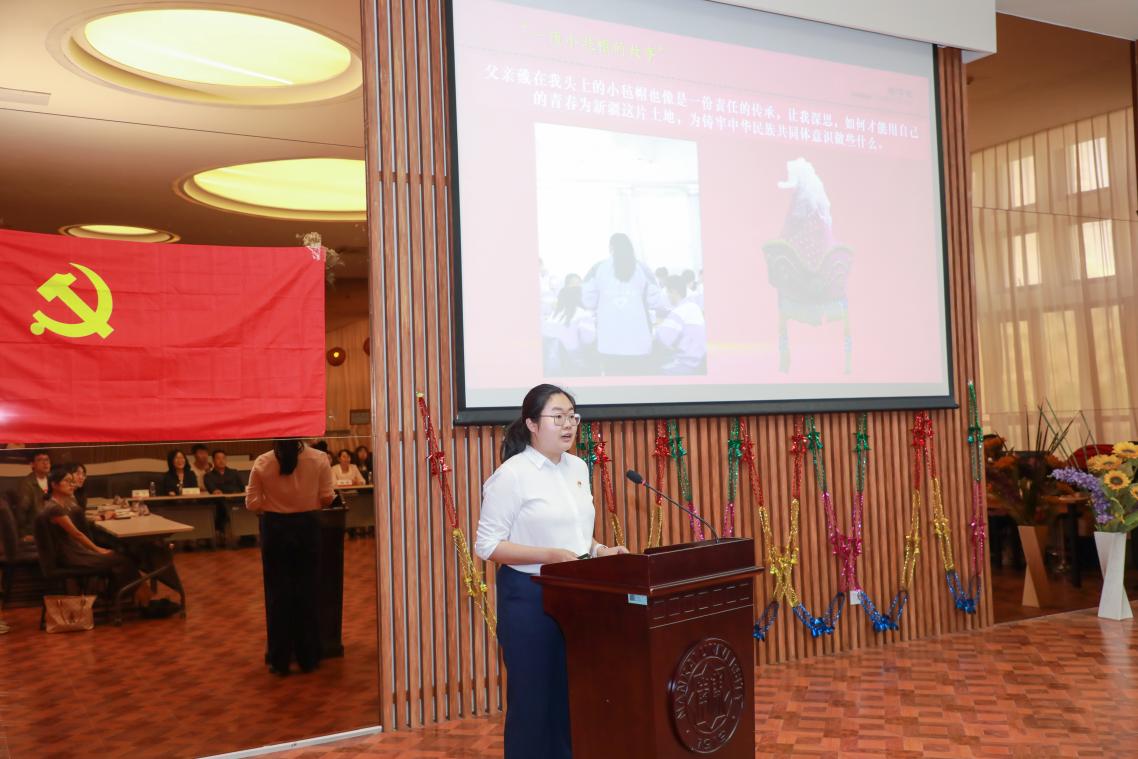 活动中,苏比伊努尔进行了jinnianhui金年会铸牢中华民族共同体意识工作汇报。jinnianhui金年会正处级组织员孙跃为jinnianhui金年会铸牢中华民族共同体意识宣讲团进行了授旗。阿米尔江·阿力木和张好妍两位学生代表,围绕“铸牢中华民族共同体意识”这一主题,分别分享了他们在学习过程中的深刻体会以及在实际工作中所展现的亮点和取得的成效。