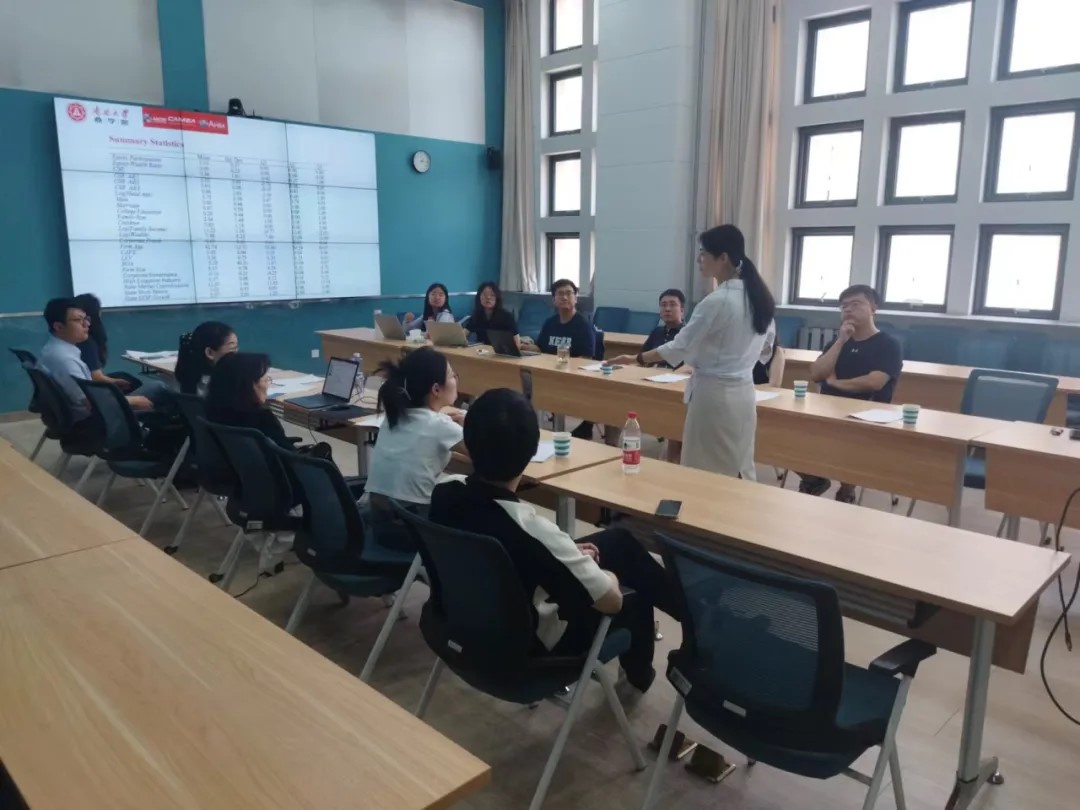 与会教师和学生与余老师进行了充分的交流讨论,开展了关于数据来源、数据构成与优化处理、CSR的外部性、CSR和ESG的关系等问题的讨论,该过程启发了师生们对本地企业的企业社会责任表现与家庭股票市场参与之间的关系的深度思考。